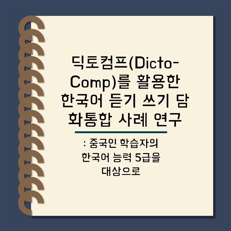| 논문명 | 딕토컴프(Dicto-Comp)를 활용한 한국어 듣기 쓰기 담화통합 사례 연구 : 중국인 학습자의 한국어 능력 5급을 대상으로 |